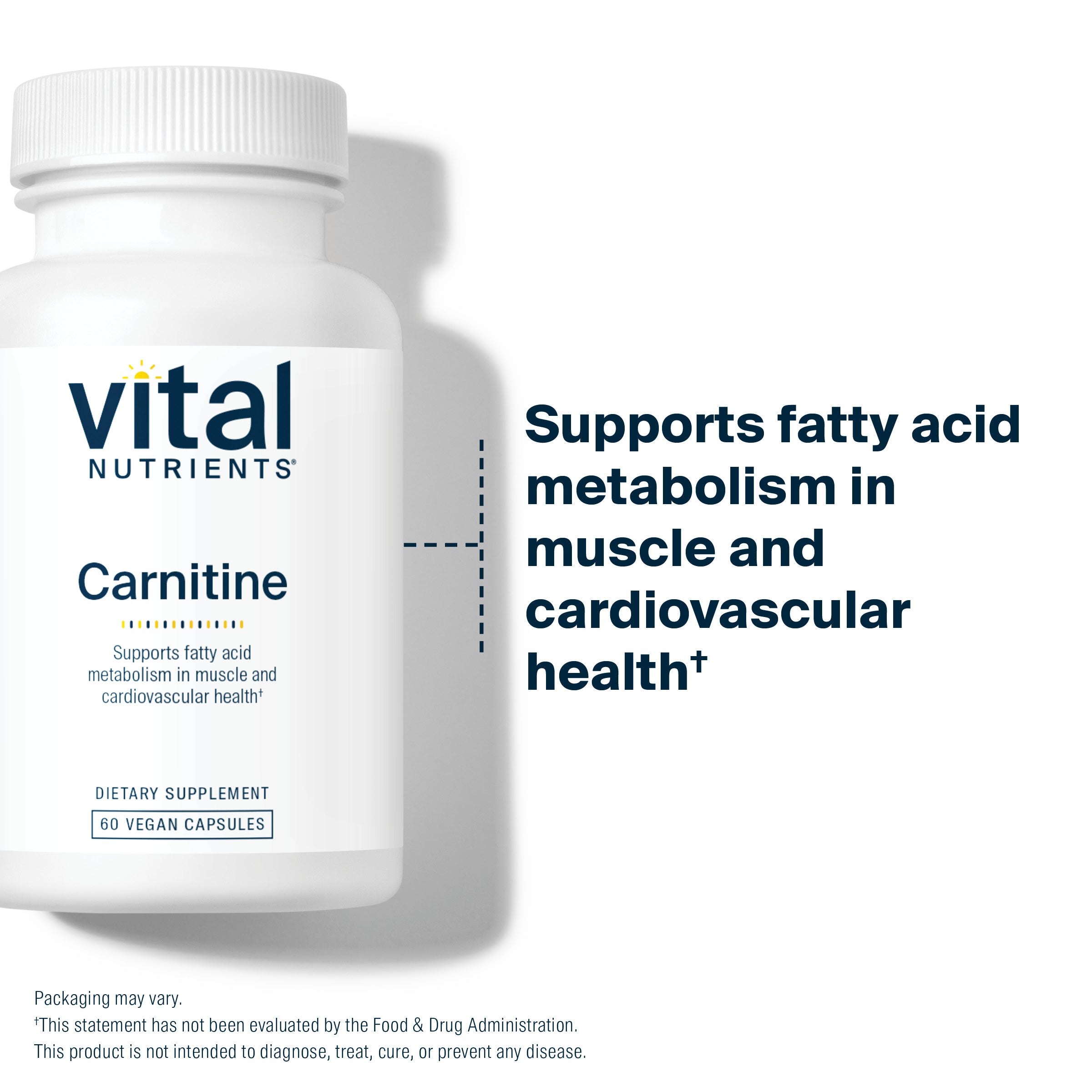Carnitine is made in the body from the amino acids, lysine and methionine.* Carnitine is often called an amino acid because of its chemical makeup, however it is actually a vitamin-like nutrient, related in structure to the B vitamins.* It plays an essential role in transporting fatty acids into the muscles for energy, and is needed to transport these substances into the heart muscle.* Nearly 60% of the energy for the heart muscle is supplied by fatty acids.* It is also one of the two amino acids which promote sperm motility.*