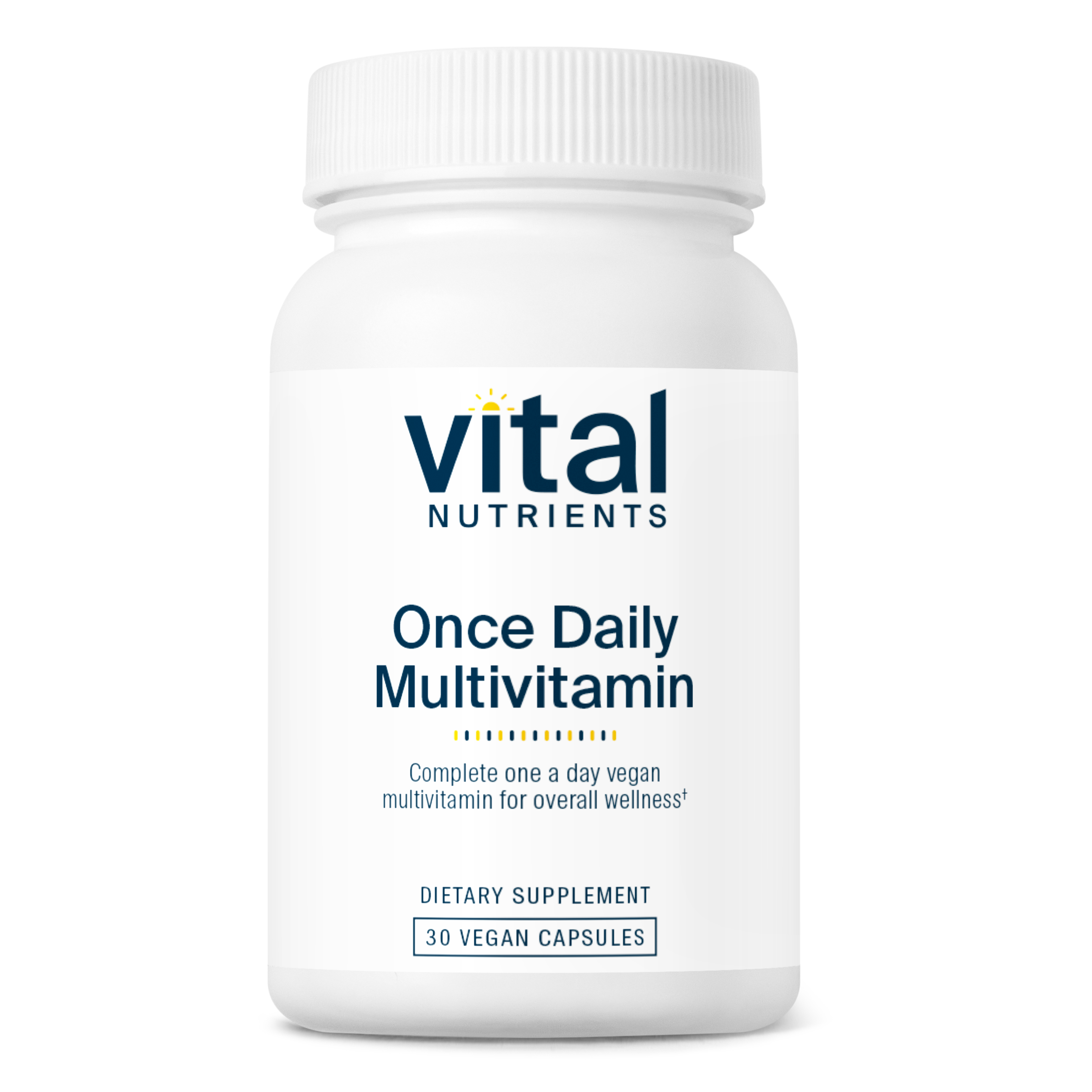 Vital Nutrients Once Daily Multivitamin is a clean and easy-to-take, one-per-day multivitamin specifically formulated to provide essential nutrients needed for a healthy lifestyle and help fill the nutrient gaps in the daily diet. Once Daily is a completely vegan formula, even including vegan vitamin D.
