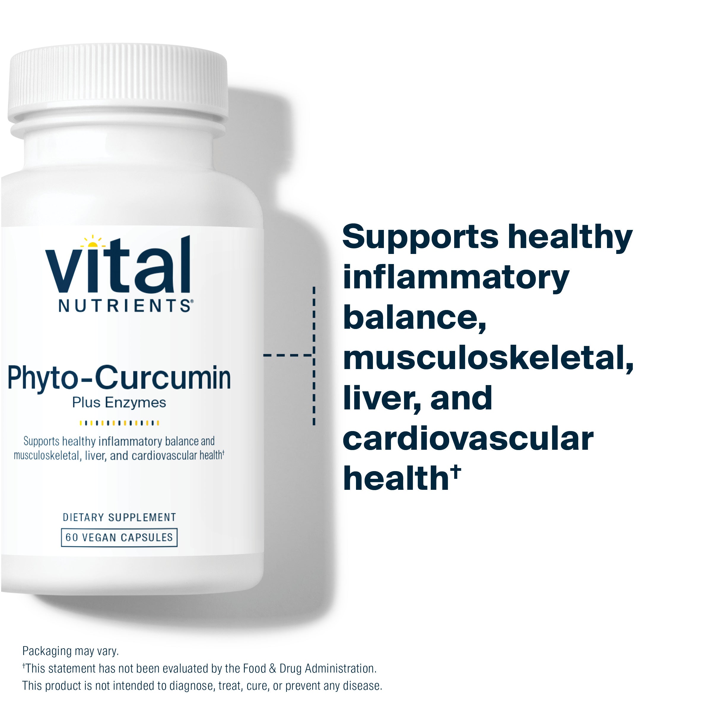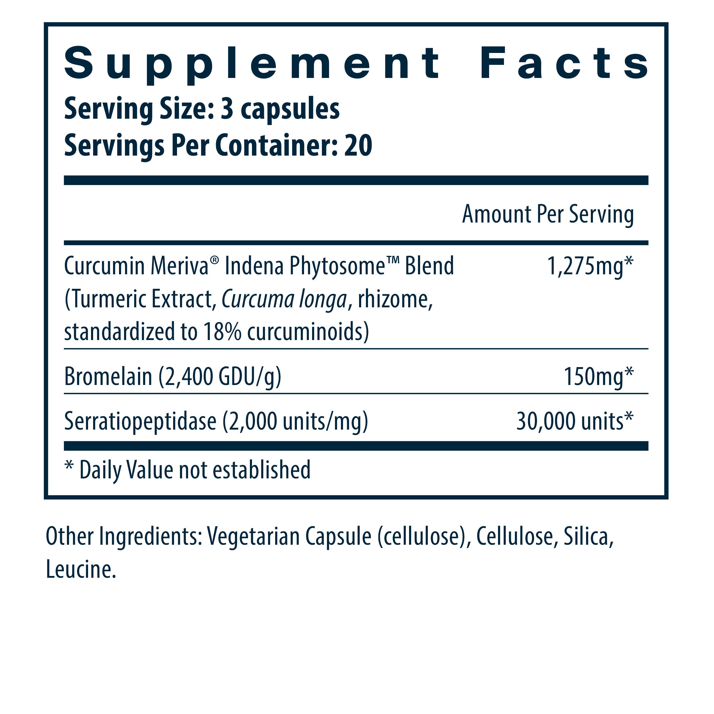 Phyto-Curcumin Plus Enzymes contains Curcumin Phytosome Extract, Bromelain, and Serratiopeptidase. Curcumin Phytosome extract combines an extract from the rhizome of the Curcuma longa plant with phosphatidylcholine, a phospholipid, to enhance the bioavailability of curcumin.* Bromelain and Serratiopeptidase are proteolytic enzymes, which work synergistically with Curcumin Phytosome extract to maintain and support healthy inflammatory balance, as well as musculoskeletal, intestinal, liver, and cardiovascular health.*