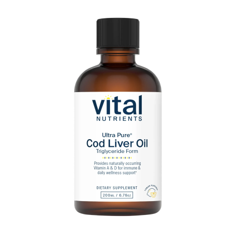 Ultra Pure® Cod Liver Oil 1025 contains Omega 3 essential fatty acids, which promote healthy brain development and function and may help improve learning and achievement in adults and children.* The typical Western diet is known to be widely deficient in omega-3 fatty acids. Fish oils such as cod liver oil are widely recommended to help maintain and support cardiovascular health, joint mobility, memory, cognitive function and neurological health.* Vital Nutrients 100% pure Norwegian cod liver oil also contains naturally occurring Vitamins A and D, fat soluble essential nutrients which help support positive mood, immune function and healthy skin*.