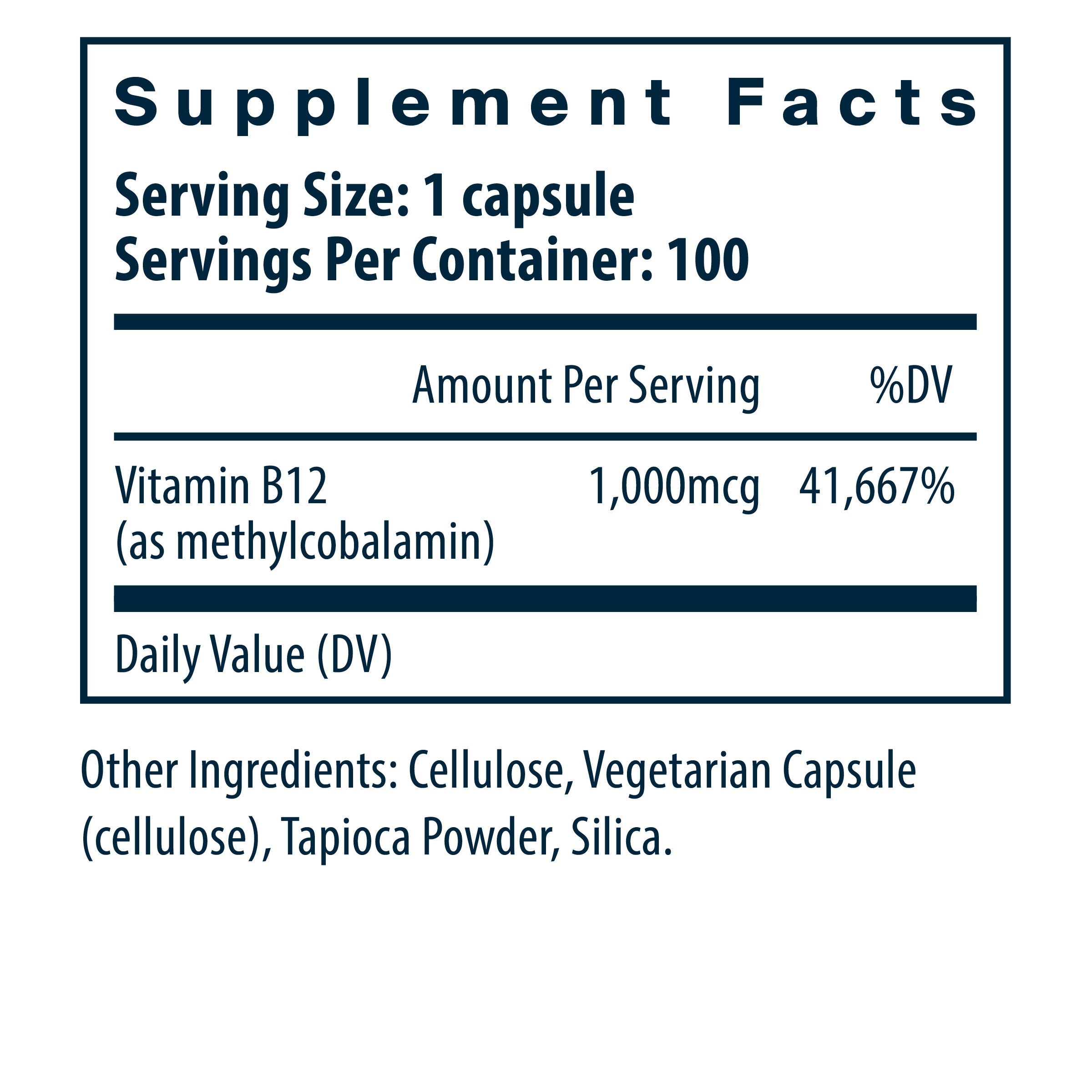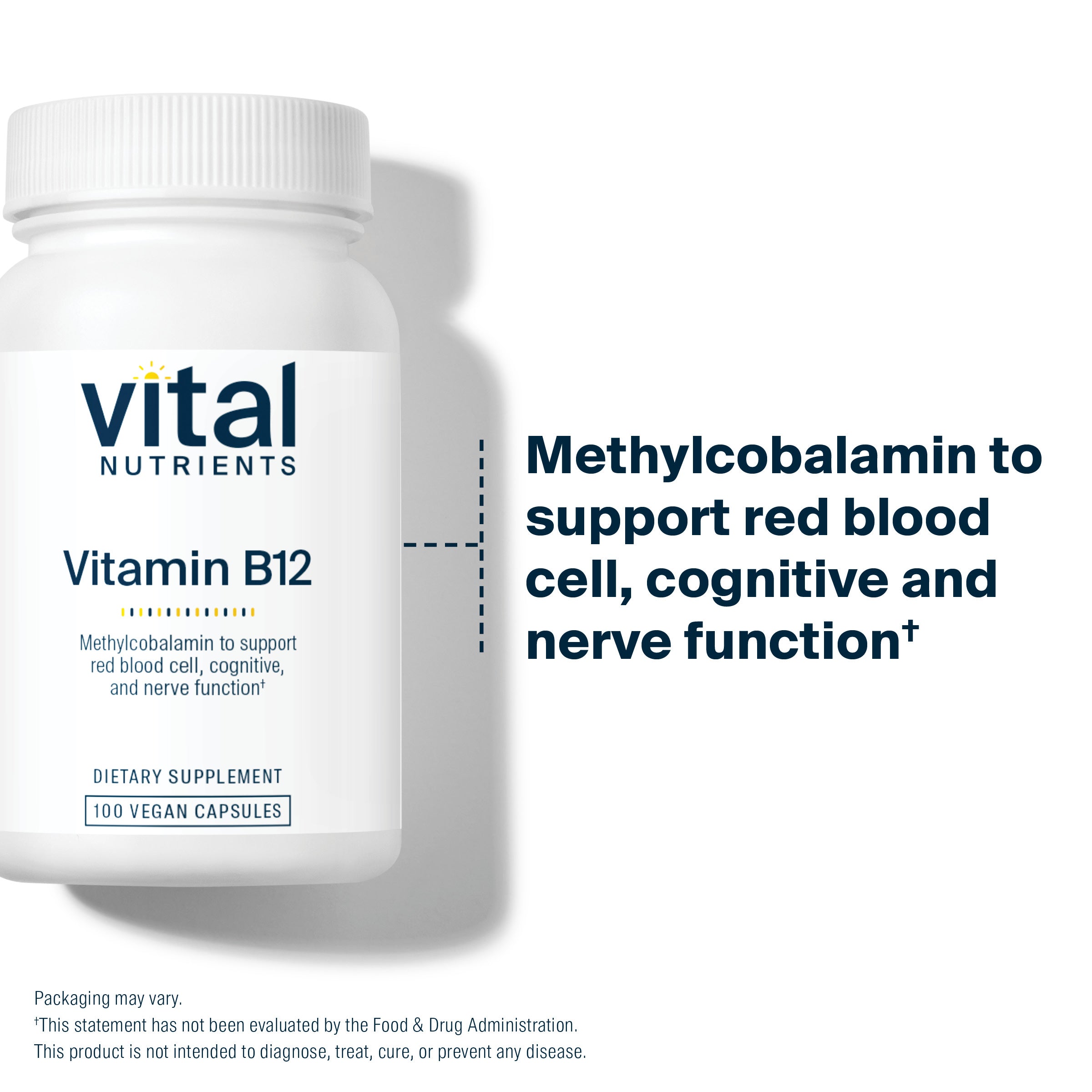 Vitamin B12 supports the body in converting carbohydrates into energy and in the metabolism of protein and fats.* It also promotes the health of the gastrointestinal tract and proper red blood cell formation.* B12 supports cardiovascular health by helping to maintain homocysteine levels that are already in the normal range.* Vitamin B12 is needed to produce neurotransmitters such as serotonin to support positive mood, and myelin for a healthy nervous system.* Methylcobalamin, the methylated form of B12 is considered to be the most bioavailable, active form.*