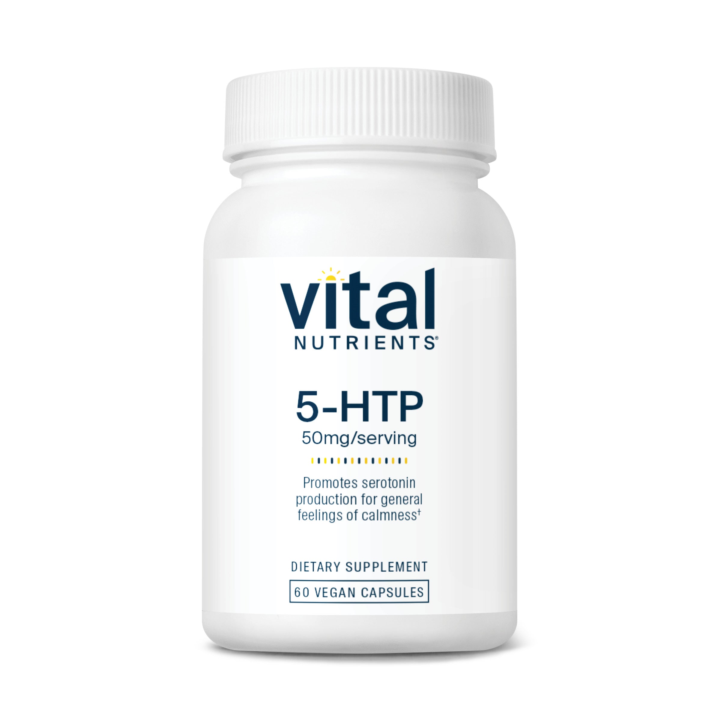 5HTP (5-Hydroxytryptophan) is made in the body from L-tryptophan, and can be converted to serotonin. 5-HTP readily crosses the blood-brain barrier, and promotes serotonin levels in the brain which help create healthy functioning of the sleep/wake cycle and positive mood.* Along with emotional well-being, appetite control may also be affected in a positive manner.* Vital Nutrients 5HTP is naturally derived from the seeds of the Griffonia simplicifolia plant.