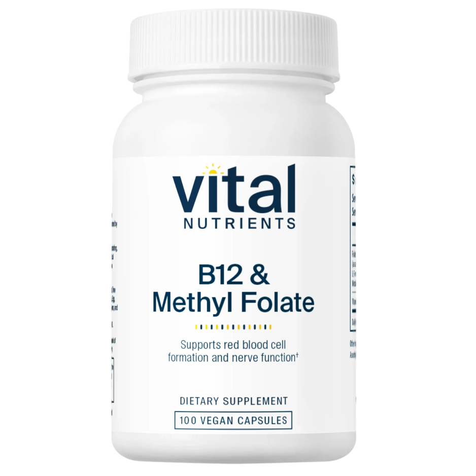 Vitamin B12 and Folate work together to help maintain the health of the gastrointestinal tract, nervous system and the metabolism of protein and fats.* Both maintain homocysteine levels that are already in the normal range and folate may reduce the risk of neural tube birth defects.* This formula contains the methylated forms of B12 (methylcobalamin) and folate (Metafolin L-5-MTHF), considered to be the most bioavailable and physiologically active forms.*