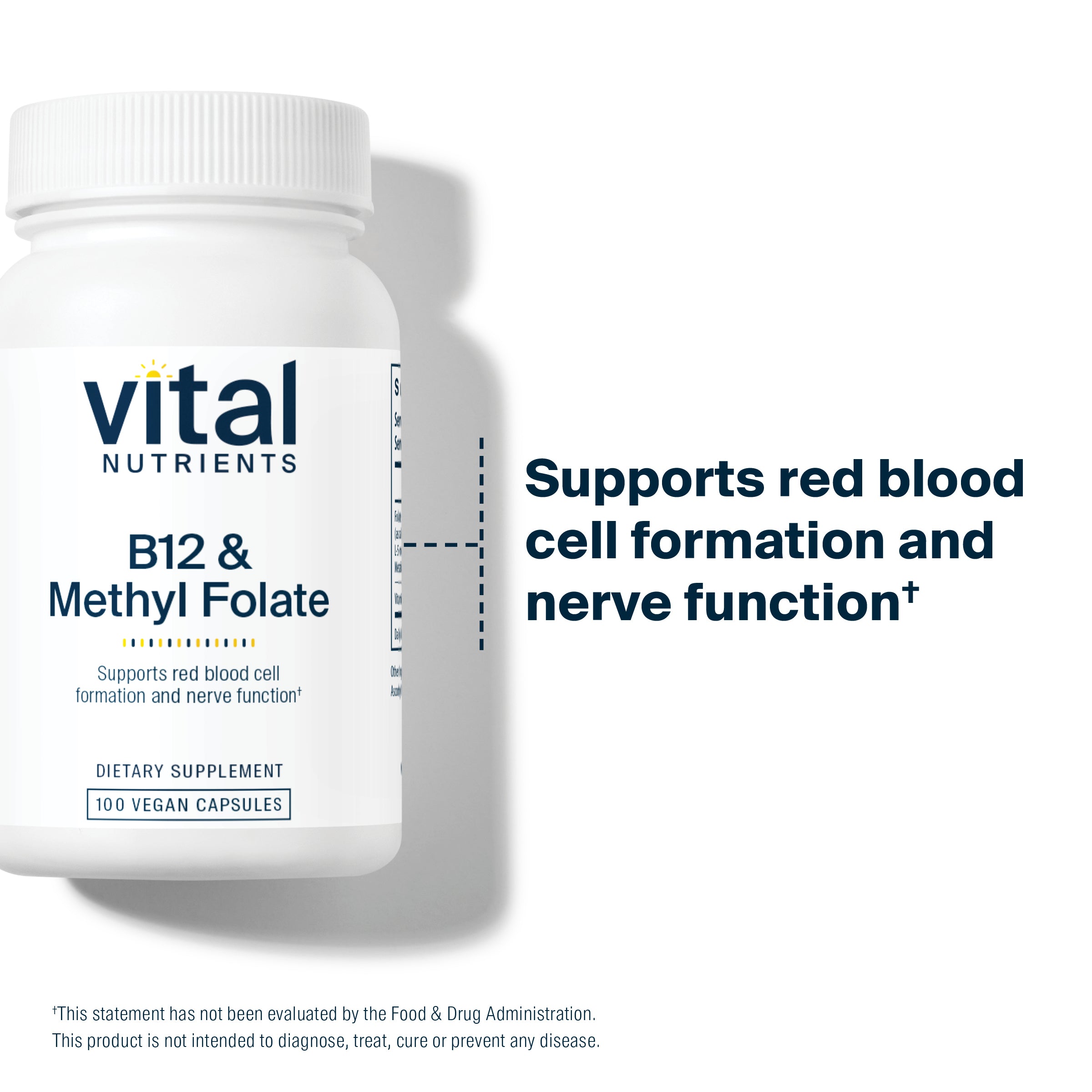 Vitamin B12 and Folate work together to help maintain the health of the gastrointestinal tract, nervous system and the metabolism of protein and fats.* Both maintain homocysteine levels that are already in the normal range and folate may reduce the risk of neural tube birth defects.* This formula contains the methylated forms of B12 (methylcobalamin) and folate (Metafolin L-5-MTHF), considered to be the most bioavailable and physiologically active forms.*