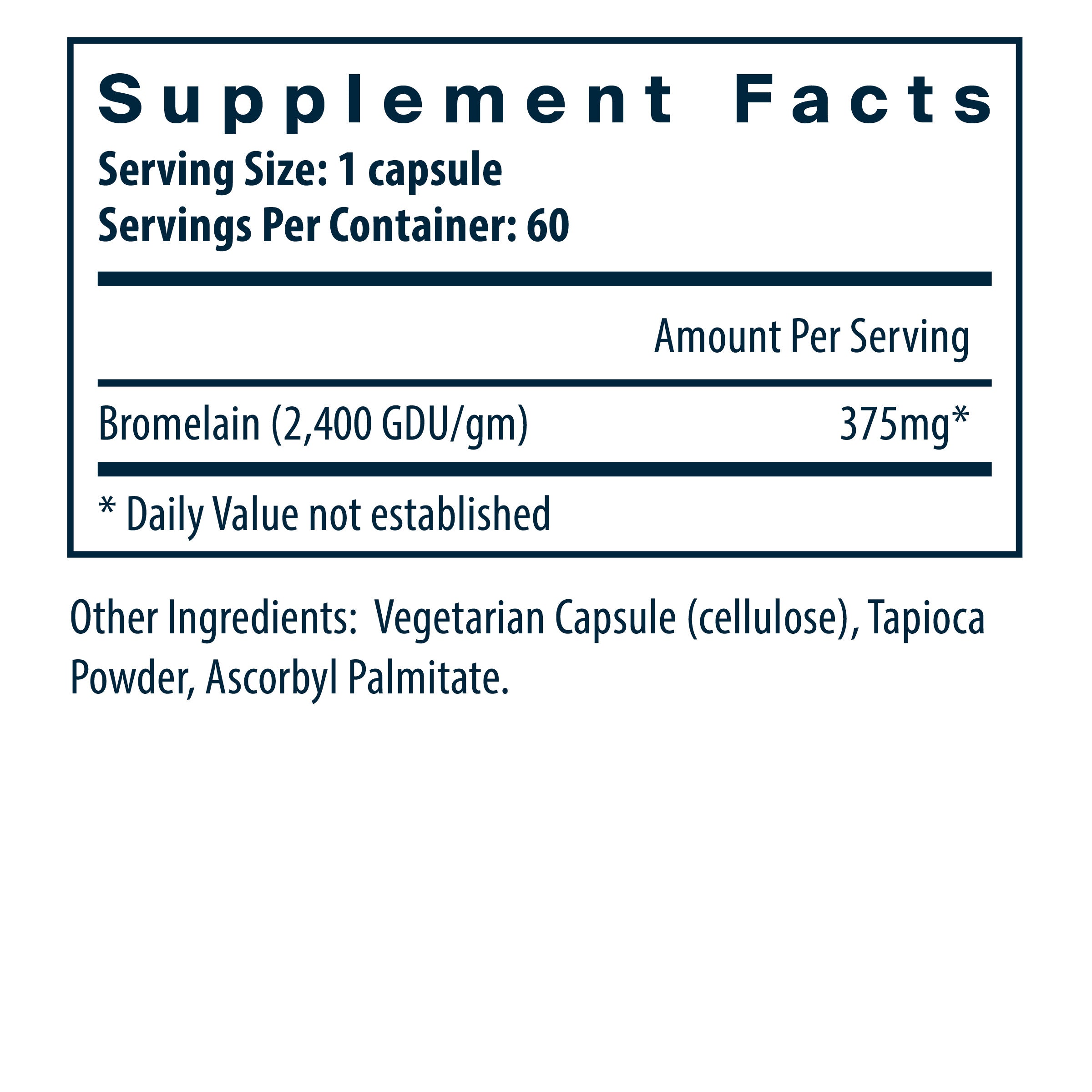 Bromelain is an enzyme found in pineapple stem, with a long history of use as a dietary supplement. Bromelain is considered a proteolytic enzyme due to its ability to break down protein when taken with food, although its benefits extend beyond digestion. When taken between meals, Bromelain helps support the body's physiologic levels of kinins and fibrins, promoting healthy capillary blood flow to facilitate delivery of nutrients and removal of inflammatory waste products.* Bromelain is particularly useful for individuals interested in promoting normal sinus, tissue, and musculoskeletal health.*