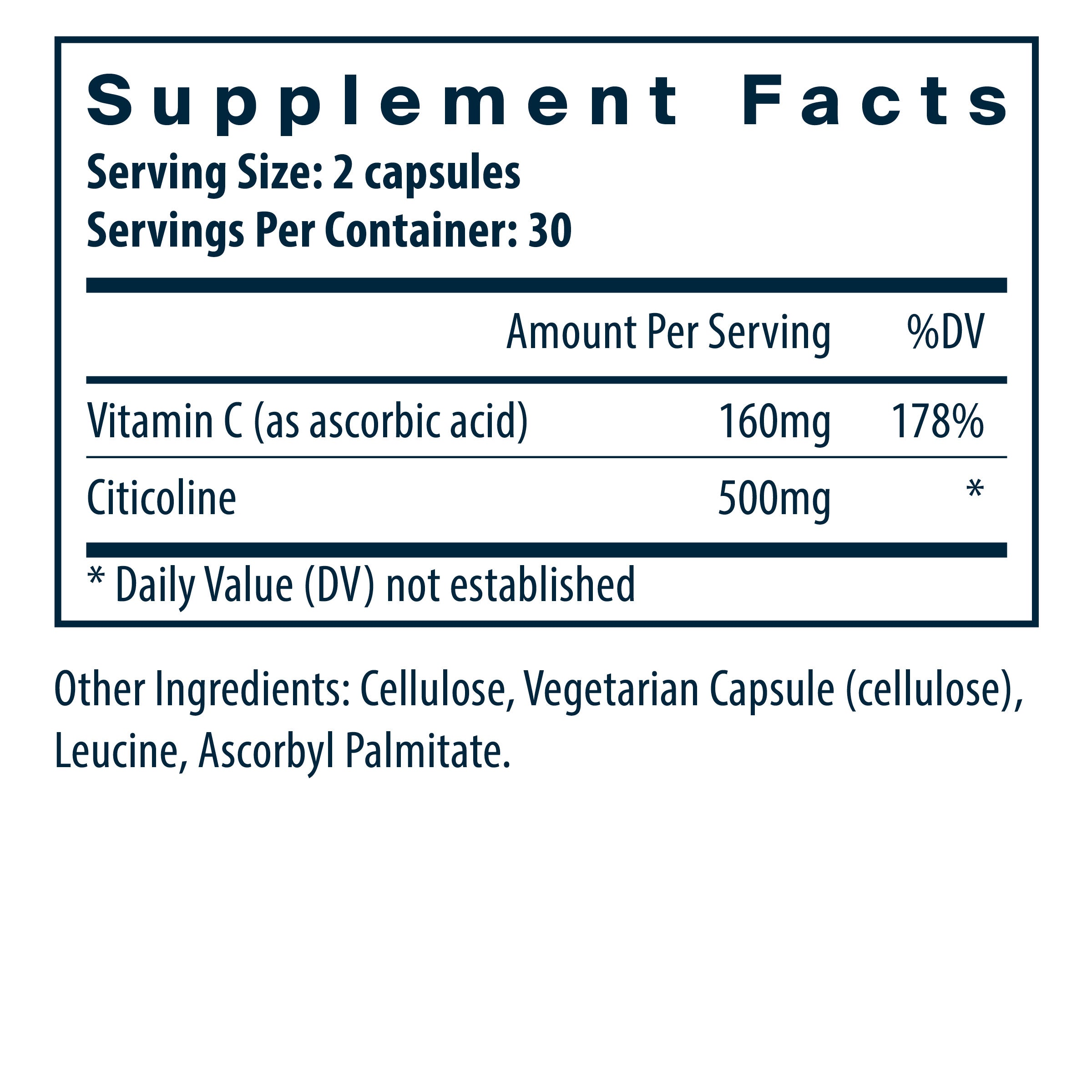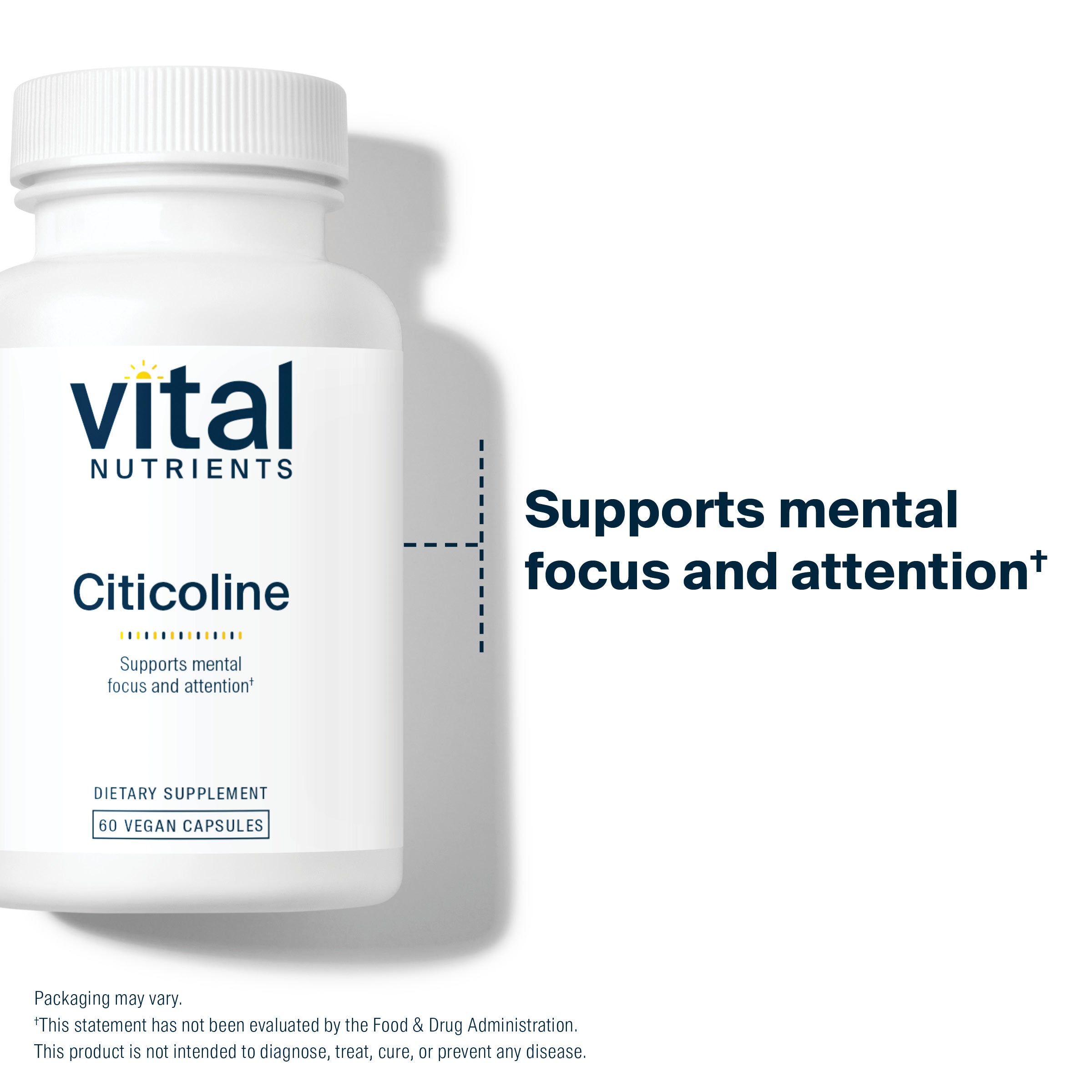 Vital Nutrients uses Cognizin®, a patented and research backed form of Citicoline, a naturally occurring nutrient found in every living cell. Citicoline helps support the brain’s metabolic activity and has a variety of cognitive enhancing, neuroprotective and neuroregenerative properties.* It is also an essential building block for certain key neurotransmitters that help support focus, attention and the formation of new memories.* Research suggests Citicoline may help to mitigate age-related cognitive decline by increasing energy reserves and utilization. * A review of citicoline supplementation with older subjects found improvements in a wide range of cognitive and behavioral measures, including memory, attention, behavior, reaction time, relational life, independence and cooperation.*