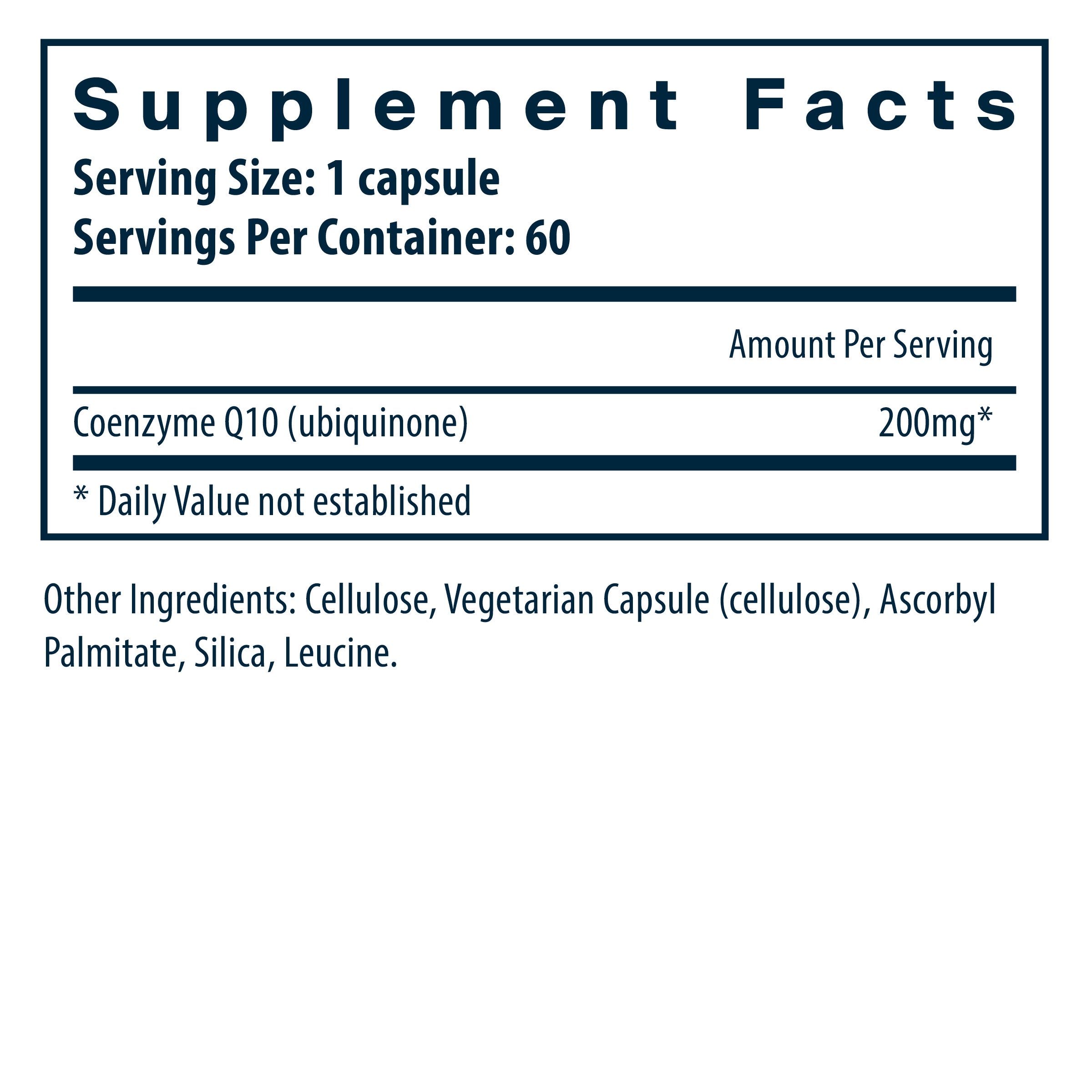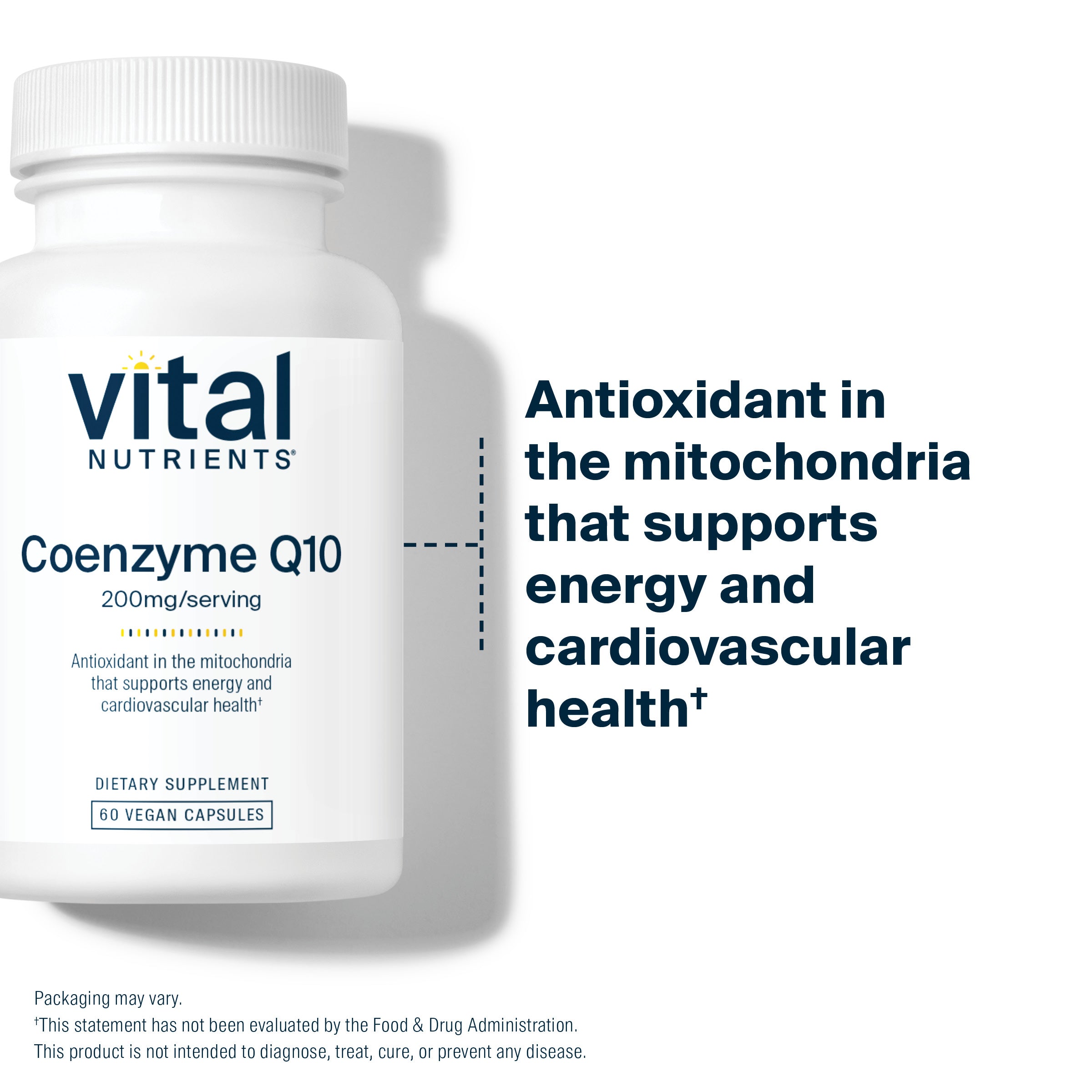CoEnzyme Q10 is an antioxidant and free radical scavenger found in the mitochondria of every cell of the body.* CoQ10 increases energy at cellular levels, and the cells and tissues with the greatest energy requirements have the highest concentrations of CoQ10. Levels of CoQ10 levels may decline with age, or be depleted by certain medications.* Supplemental CoQ10 is a fat-soluble, vitamin-like compound which nutritionally supports the cardiovascular health in several ways.* It acts as an antioxidant against peroxidation of lipids such as LDL cholesterol, helps maintain and support healthy functioning of the heart muscle and arteries, and promotes additional tolerance for exercise.* CoQ10 helps maintain blood sugar levels that are already within the normal range, promotes gingival (gum) health and normal sperm motility, and may help support healthy aging.*