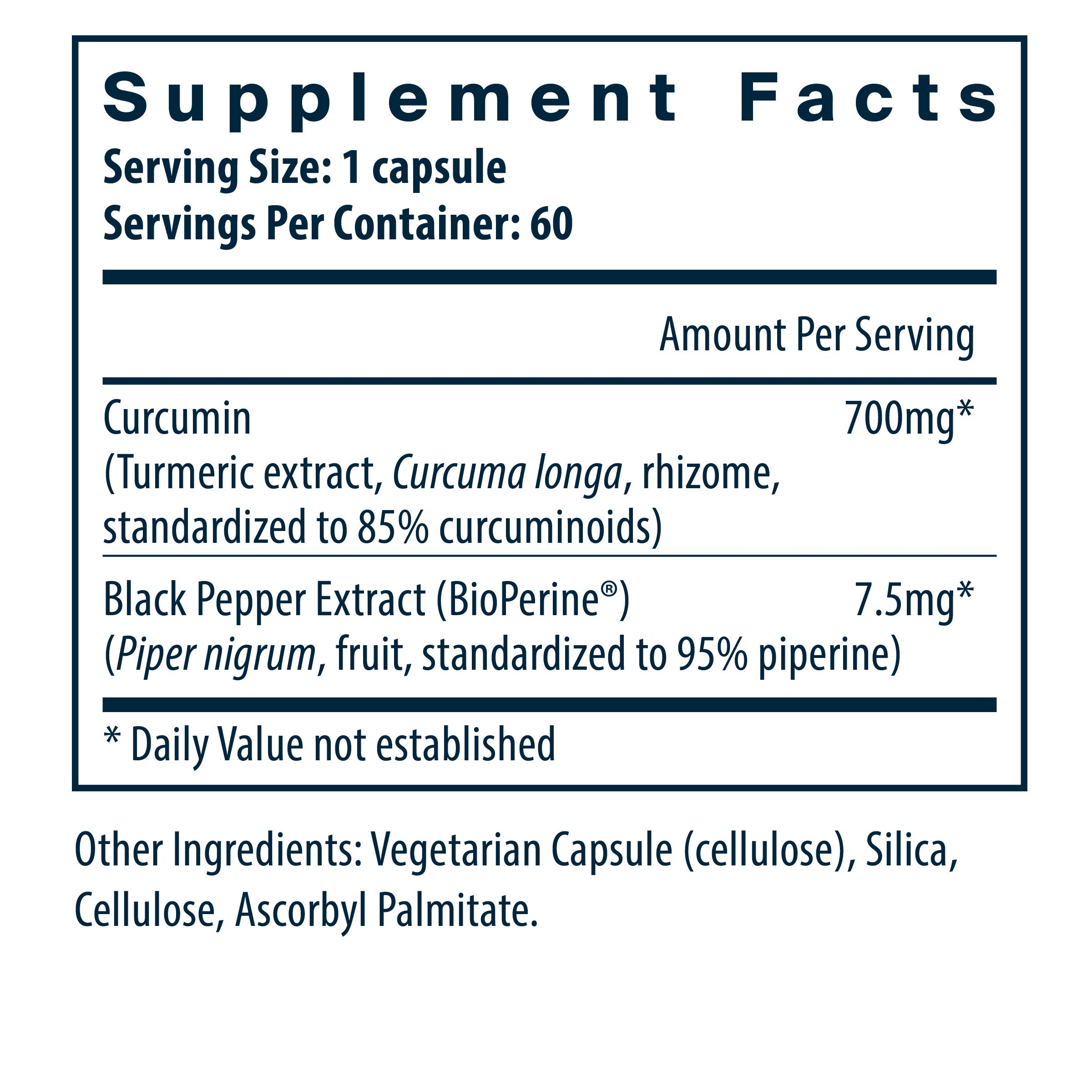 | Curcumin (Turmeric Extract, Curcuma longa, rhizome, standardized to 85% curcuminoids) | 700mg | * |