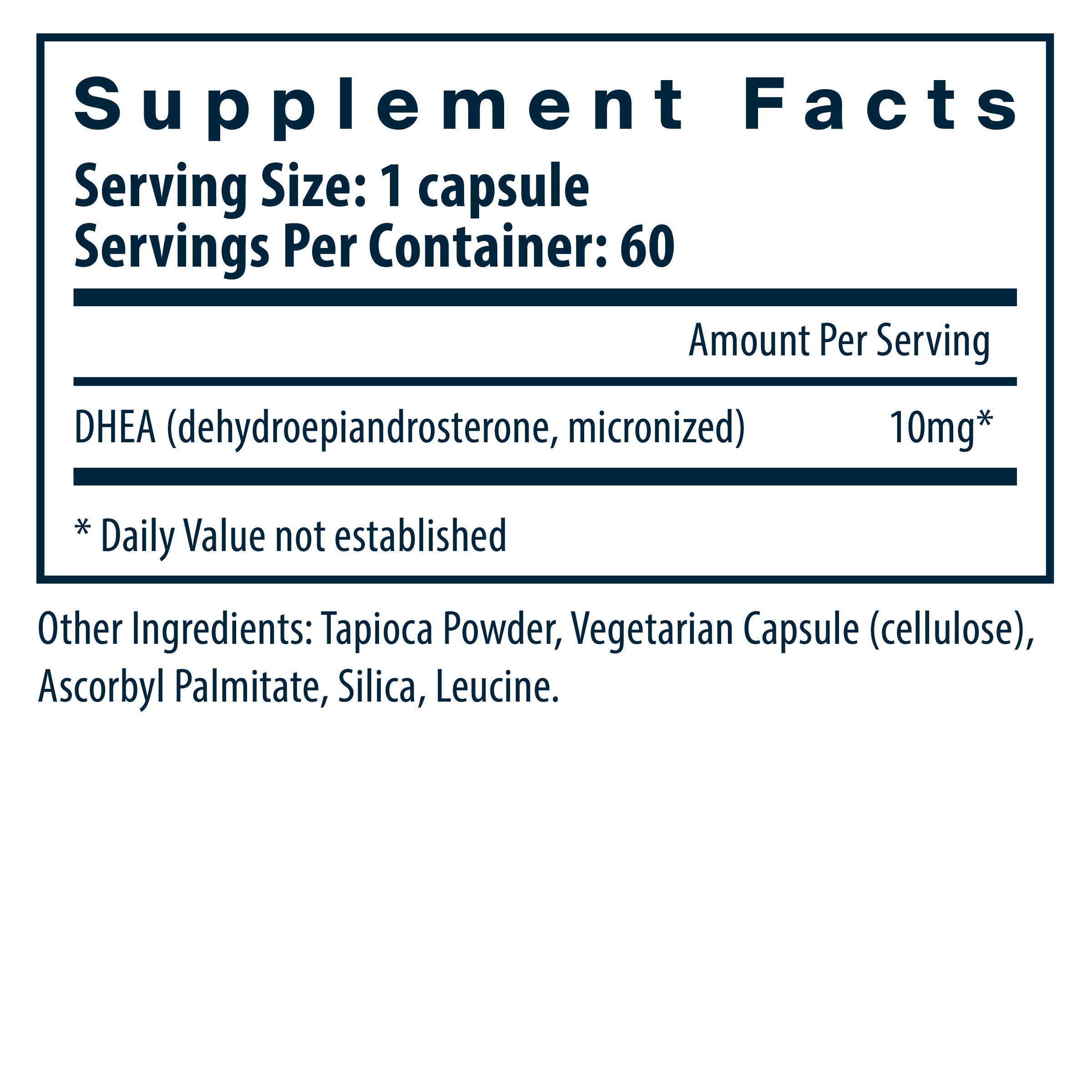 Levels of DHEA can decline with age as part of the natural aging process. DHEA is a hormone that is produced in our bodies by the adrenal glands and the levels of this hormone may begin to decline after the age of 30. Supplementing may help replenish what our bodies lose over time, to support healthy aging. DHEA is a precursor to androgens, and along with other adrenal hormones, supports fat, sugar and mineral metabolism, immune response, energy levels, and estrogen and testosterone levels.* Vital Nutrients DHEA is micronized to help increase absorption in the body.*