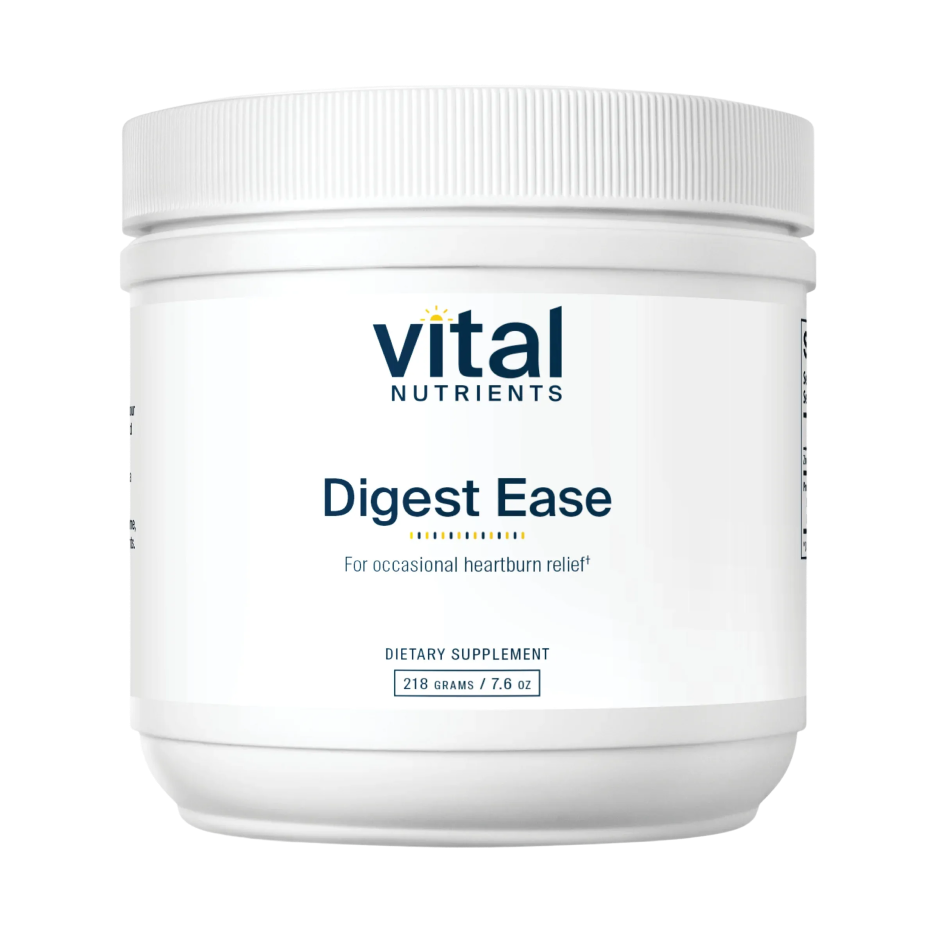Digest Ease (formerly Heartburn Tx) is a combination of herbs and nutrients designed to work synergistically and provide relief of occasional heartburn and indigestion.* Deglycyrrhized Licorice (DGL) and Aloe Vera are added to help soothe the GI tract, while Zinc helps promote and maintain the integrity of the gastric mucosal lining.* L-Glutamine and N-Acetyl-Glucosamine to provide fuel, protection, and structural support for gastrointestinal mucosal cells.* The addition of Glycine also promotes healthy pH balance in digestive tract*