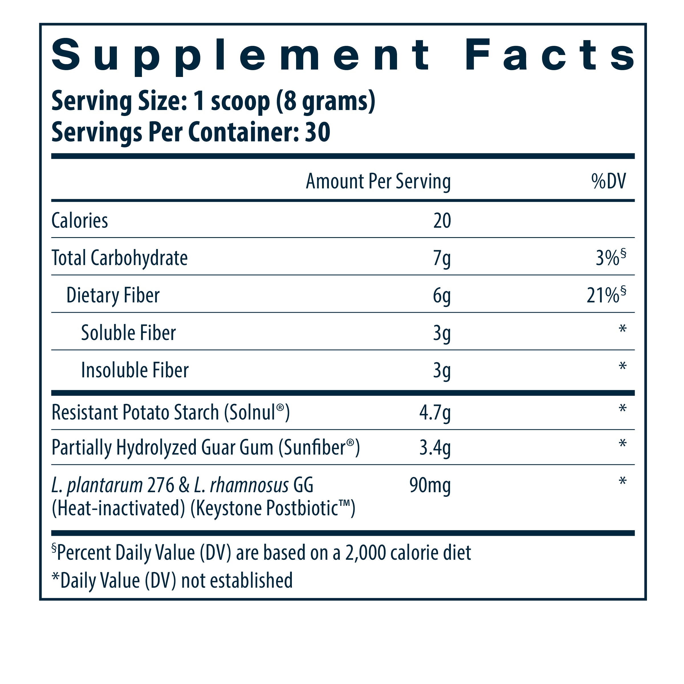 GLP-1 Daily Support Fiber is a low-FODMAP blend of soluble and insoluble fibers with added postbiotic strains for enhanced SCFA production, long-term metabolic support, and digestive regularity.Â