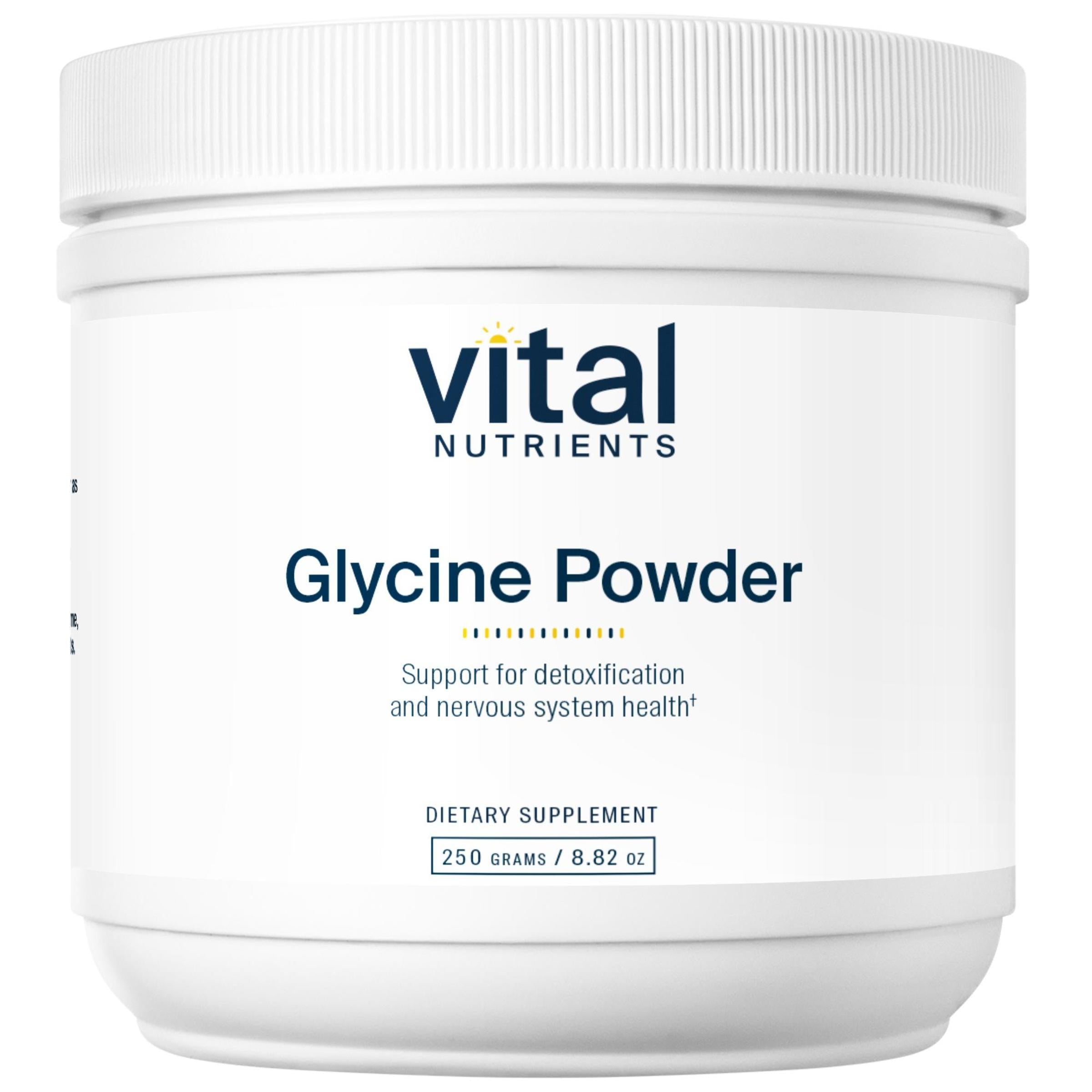 Glycine is an amino acid found in many protein food sources that helps support normal detoxification by serving as a precursor to Glutathione, a powerful intracellular antioxidant which is involved in both Phase I and II of liver detoxification.* Glycine also helps maintain a healthy nervous system and is used to alleviate mild memory changes associated with aging.* It activates many receptors in the brain which promote neural development, learning, and cognition.* Glycine is a major inhibitory neurotransmitter which supports relaxation and healthy stress management.* Clinical research suggests that taking glycine before bedtime may promote sleep quality and modestly reduce feelings of fatigue.* It should not be taken with clozapine.
