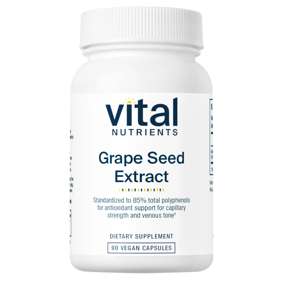 Grape Seed Extract contains oligomeric proanthocyanidins (OPCs).* They are flavonoid-rich compounds with very potent antioxidant properties.* OPCs have been found to inhibit lipid peroxidation, and to effect enzyme systems including phospholipase A2, xanthine oxidase, cycloxygenase, and lipoxygenase.* OPCs help maintain capillary strength and integrity and venous tone.*