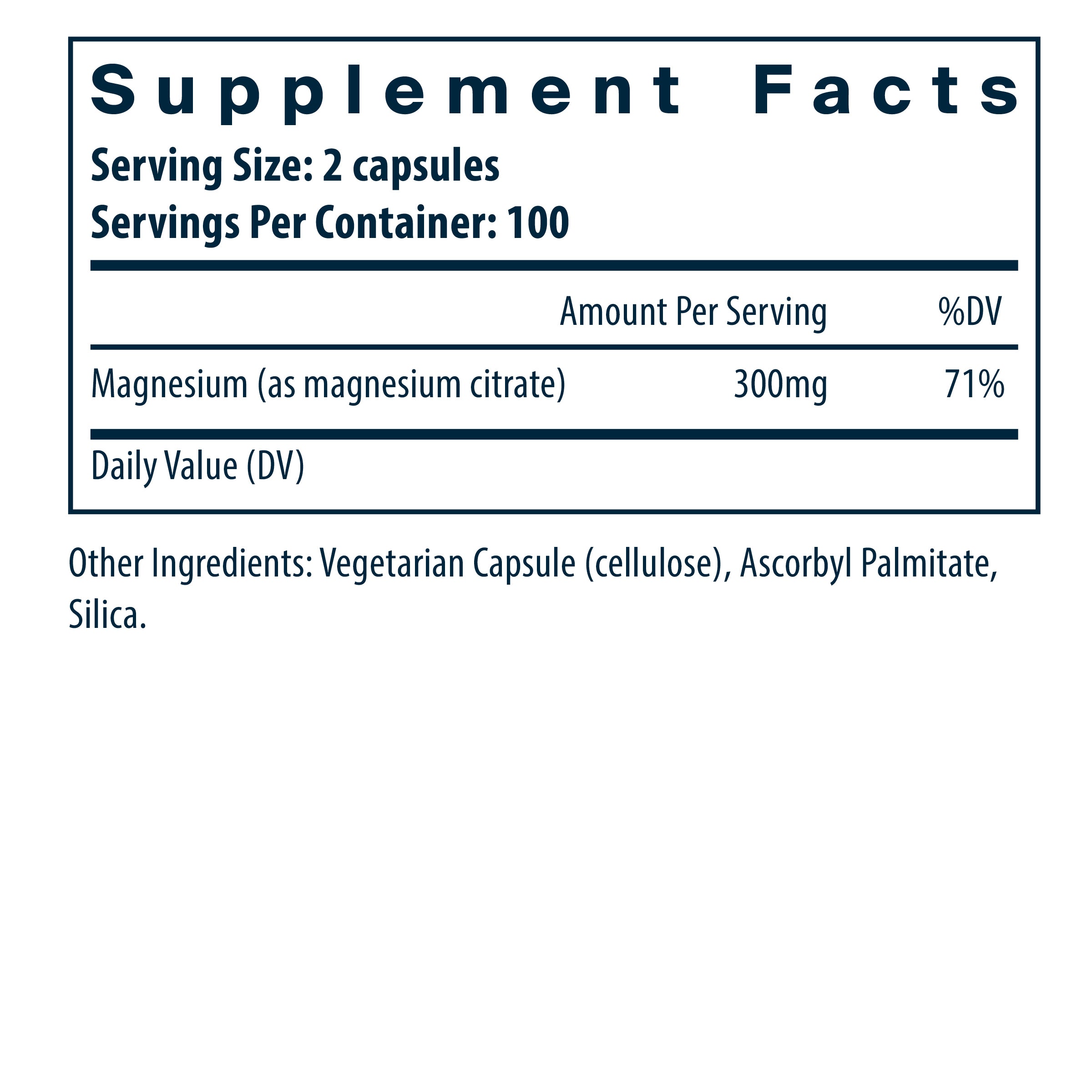 | Magnesium (as magnesium citrate) | 300mg | 71% |
