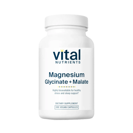 Magnesium Glycinate + Malate combines two forms of magnesium, magnesium malate and magnesium glycinate, which are easily absorbed into the bloodstream and are gentler on the digestive tract than magnesium oxide or magnesium citrate. Magnesium malate is recommended for energy production, while magnesium glycinate is a gentle form that could be one of the best types for those who want to promote mental calm, relaxation and good quality sleep.*