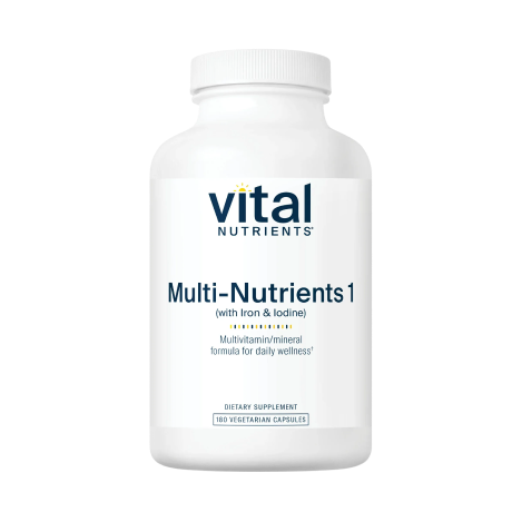 Multi-Nutrients with Iron and Iodine is a high potency multi-vitamin/mineral and trace element formula that provides the highest nutritional value for all systems of the body, including bone, skin, cardiovascular, liver, and immune support.* This formula incorporates premium ingredients to ensure optimal absorption and physiological activity, including folate as Metafolin® L-5-MTHF, Vitamin D3, potent antioxidants and mineral amino acid chelates.* This formula is identical to Multi-Nutrients, with the addition of iron and iodine.