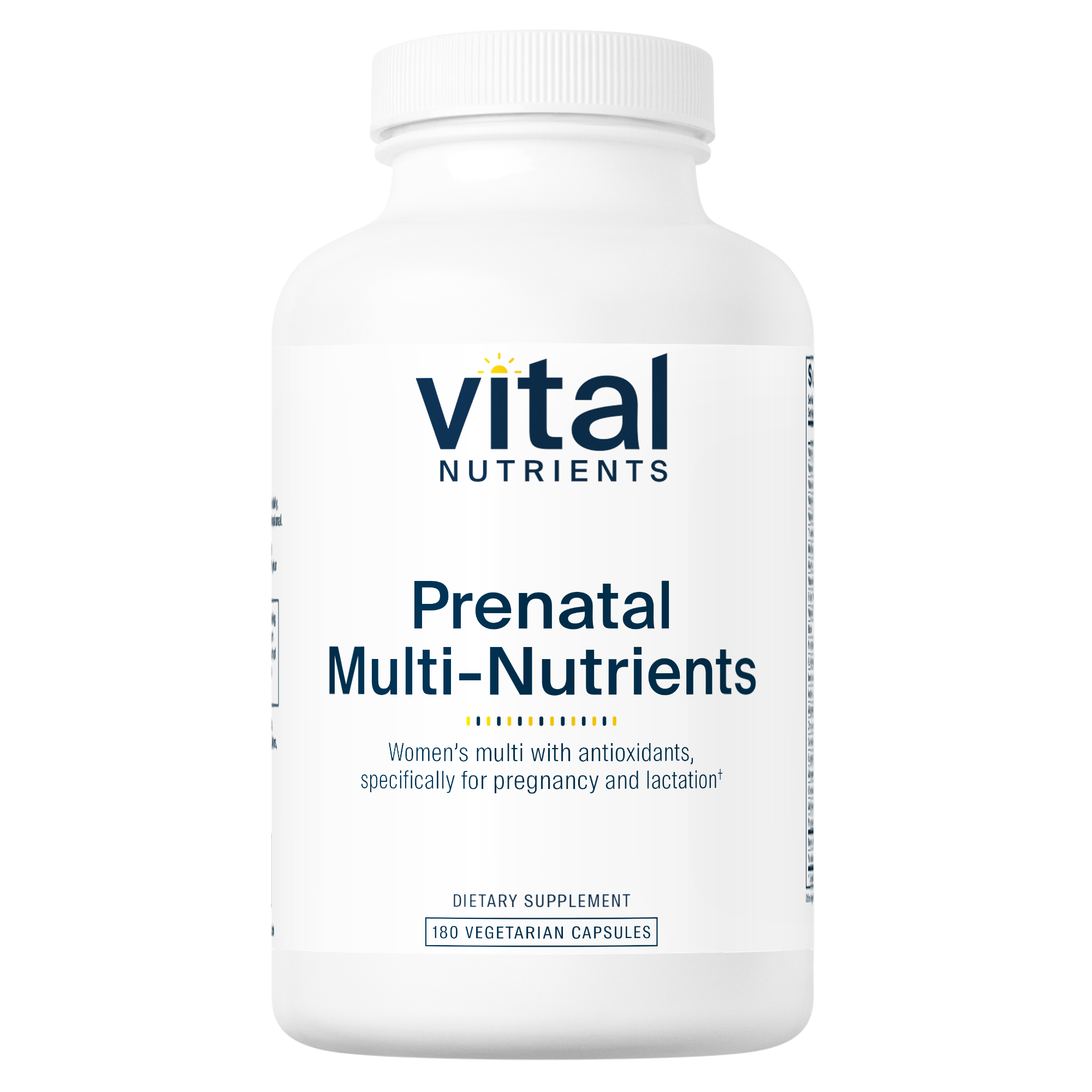 PreNatal Multi-Nutrients is a high potency multi-vitamin/mineral and trace element formula that was specially formulated to support women's health during pregnancy and lactation.* It provides the highest nutritional value for all systems of the body, including potent antioxidants, highly absorbable iron aspartate, and a therapeutic dose of Folate as Metafolin L-5-MTHF.* It is a bioavailable formula that is gentle on the stomach and well tolerated by most individuals.*