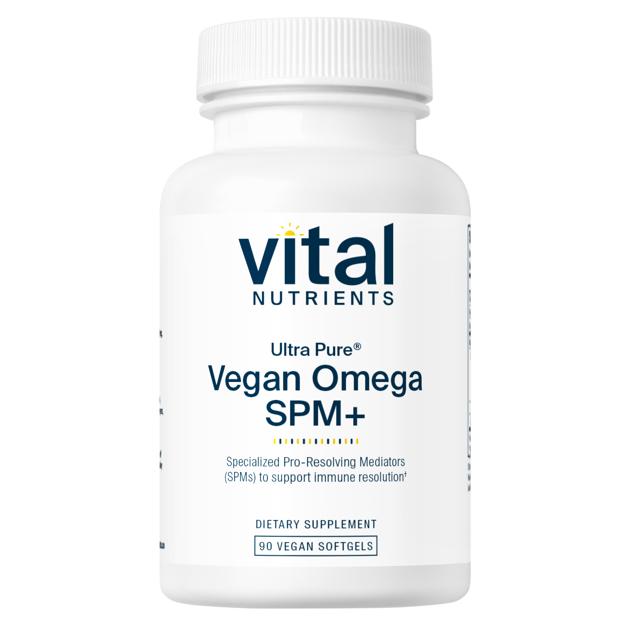 Ultra Pure® Vegan Omega SPM+ is a high-performance and nutrient-dense vegan omega supplement delivered in easy-to-swallow mini softgel capsules to improve patient experience and compliance, using a triglyceride form of DHA and DPA for better tolerance and absorption.