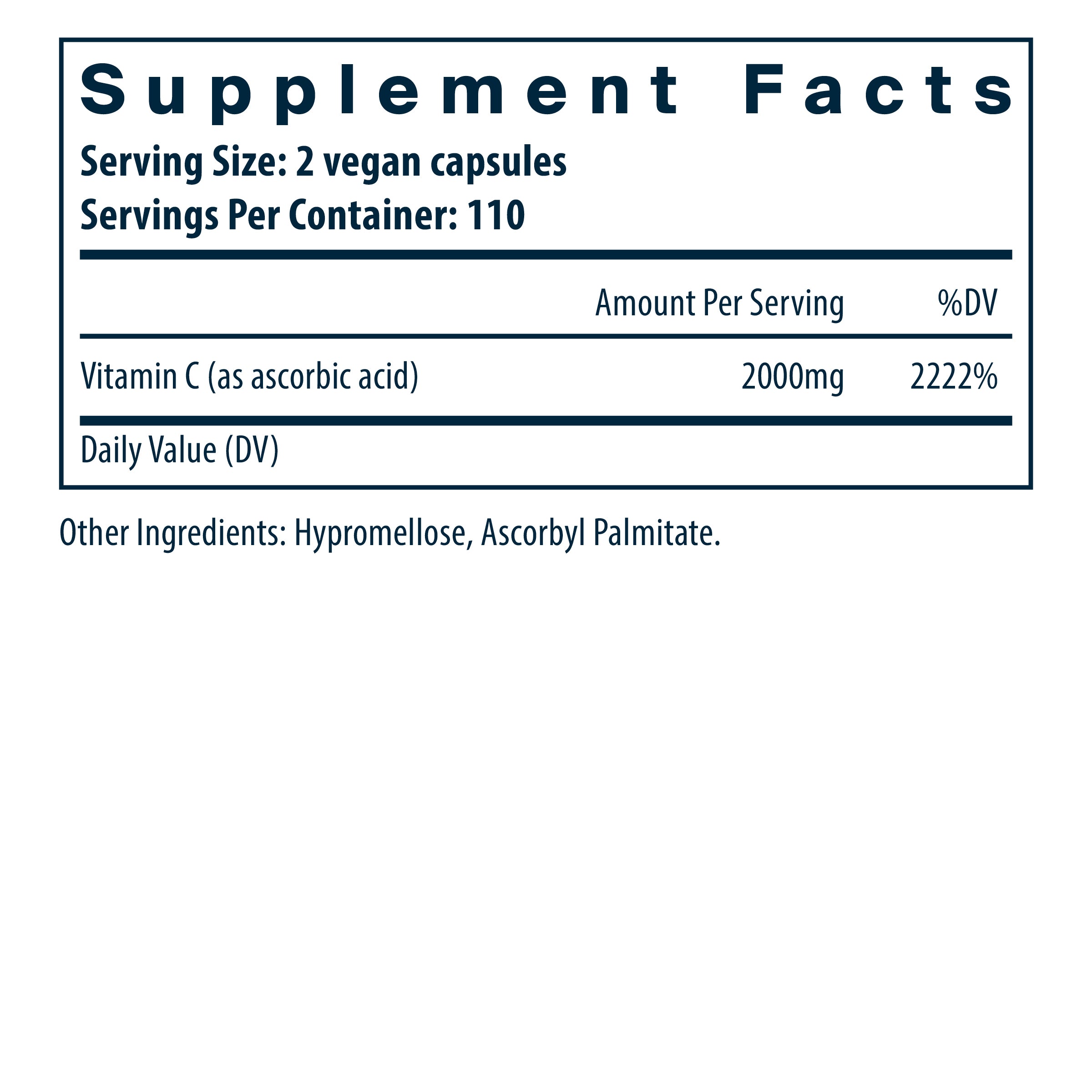 | Vitamin C (as ascorbic acid) | 2000mg | 2222% |